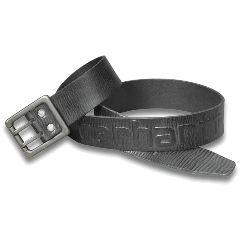 Ceinture en cuir pleine fleur double épaisseur et surpiqûre de renfort. Logo Carhartt® en relief à l'arrière, au milieu. Boucle à double ardillon avec finition nickel vieilli. Largeur 4,4 cm.