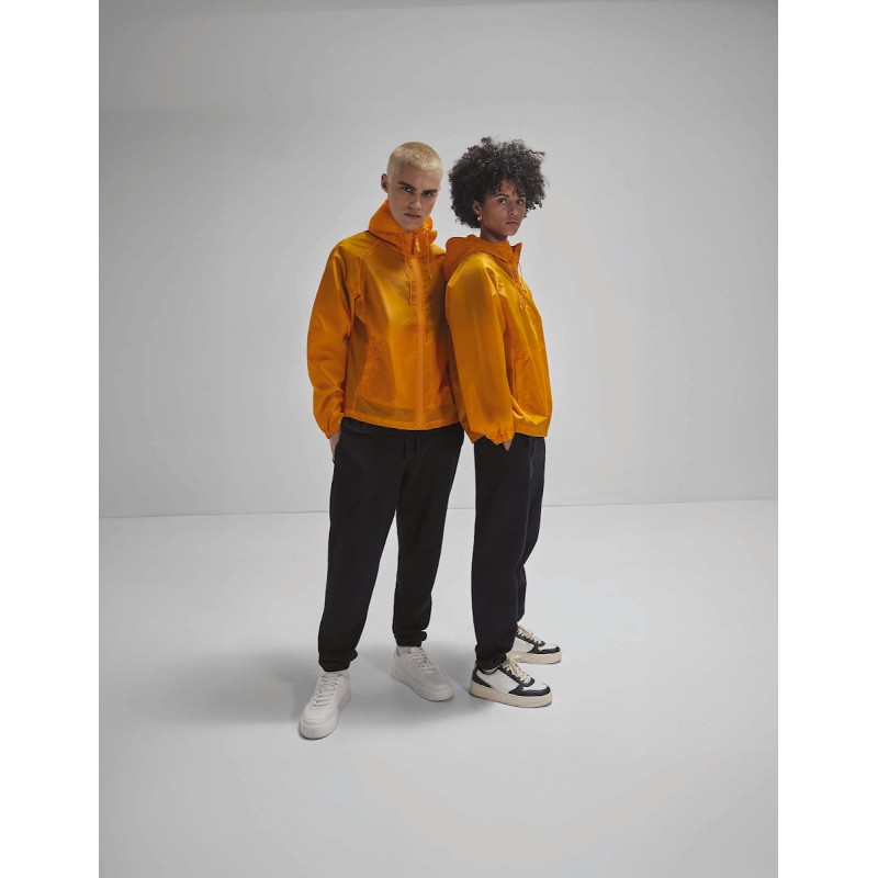 100% polyester recyclé. Résistant à l'eau grâce au revêtement déperlant DWR (Durable Water Repellent). Manches raglan, capuche tempête réglable et poignets semi-élastiques. 2 poches avant zippées.