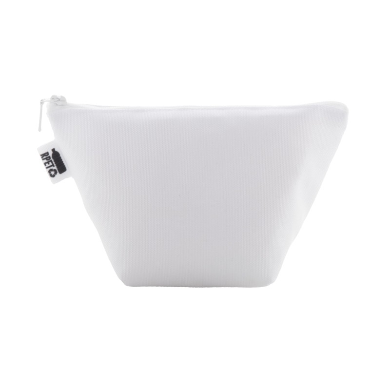 Trousse à maquillage zippé, sur mesure, en polyester RPET 600D. Avec une étiquette RPET distinctive et des graphismes en sublimation sur toute la surface. Quantité minimale de commande : 50 pièces.