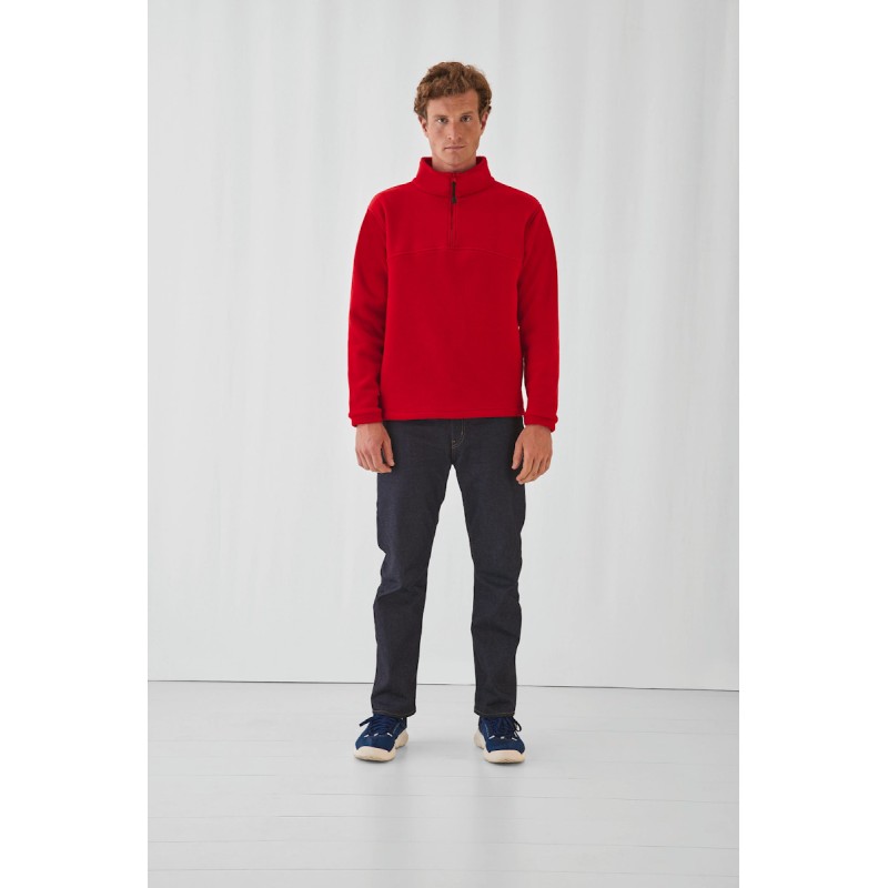 Polaire 100% polyester avec traitement anti-boulochage. 1/4 zip ton sur ton. 2 poches dans les coutures latérales.