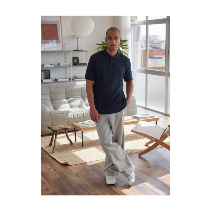 100% coton peigné pré-rétréci Ring-Spun (sauf Ash: 99% coton peigné pré-rétréci Ring-Spun / 1% viscose et Heather Grey : 90% coton peigné pré-rétréci Ring-Spun / 10% viscose). Piqué. Bande de propreté au col. Coutures renforcées aux épaules pour une meilleure tenue. Plaquette 3 boutons ton sur ton.