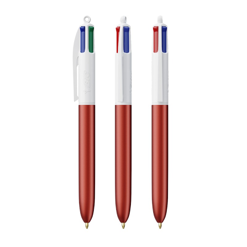 Découvrez la version glamour du BIC 4 couleurs. Maintenant, ce stylo emblématique s´habille en 5 spectaculaires couleurs givrées dans sa version BIC® 4 couleurs Glacé. Notre emblématique BIC® 4 Couleurs® devient plus durable, avec désormais 13 % de plastique en moins dans la partie supérieure !