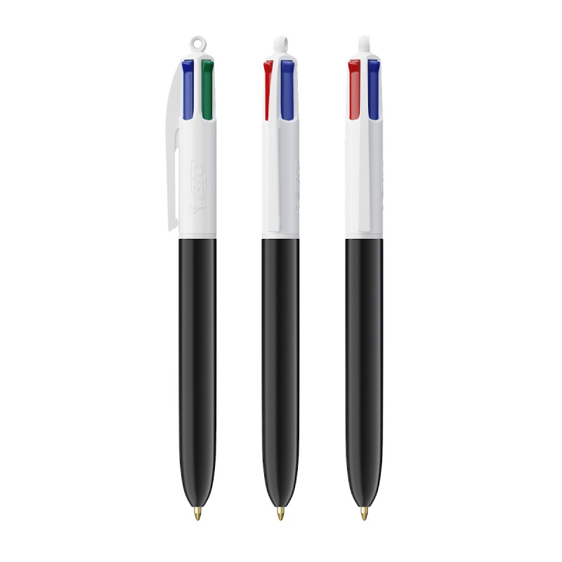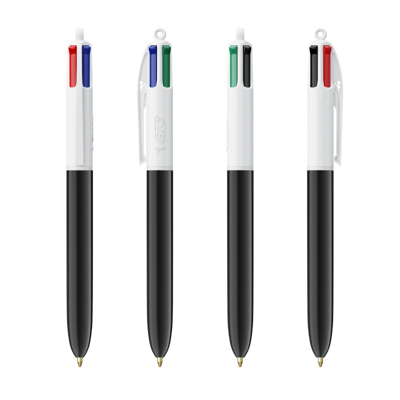 Simple, fiable, ingénieux. Quatre couleurs d’encre différentes sur un seul stylobille: bleu, noir, rouge, vert. Un stylo emblématique toujours à la mode ! Marquez-le tout en couleur avec la qualité du britePixTM Digital. Notre emblématique BIC® 4 Couleurs® devient plus durable, avec désormais 13 % de plastique en moins dans la partie supérieure ! De juin 2023 à juin 2024, veuillez retenir que vous pouvez recevoir votre ligne de commande avec le clip standard ou le nouveau clip contenant moins de plastique.