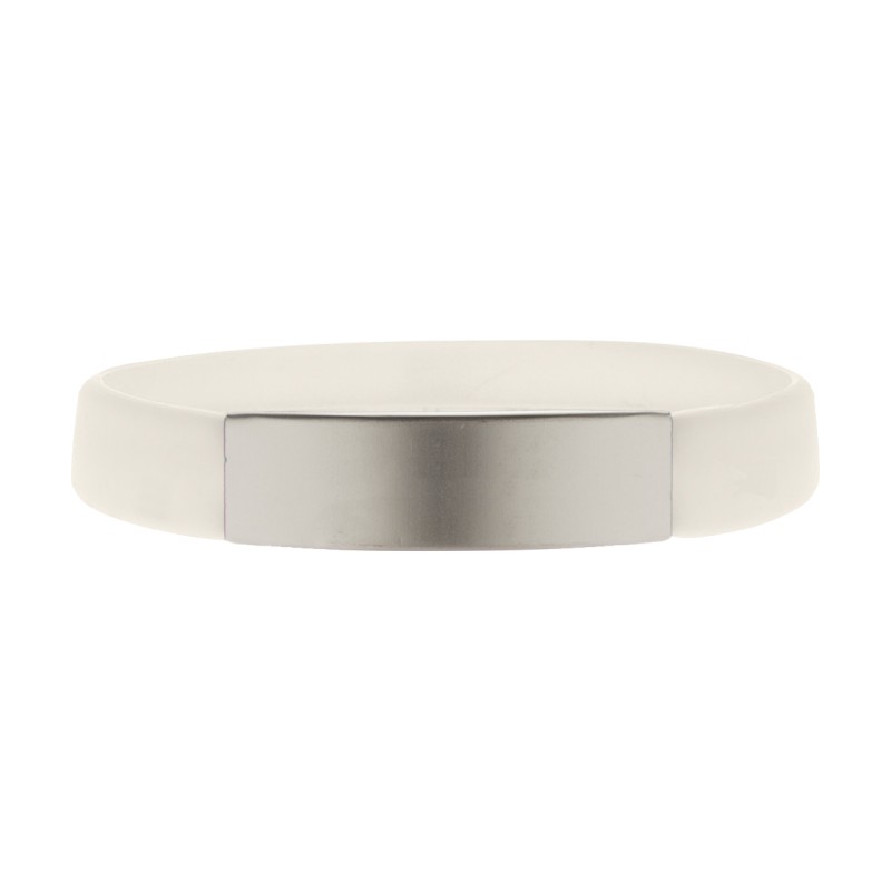 Bracelet en silicone avec plaque aluminium argenté.