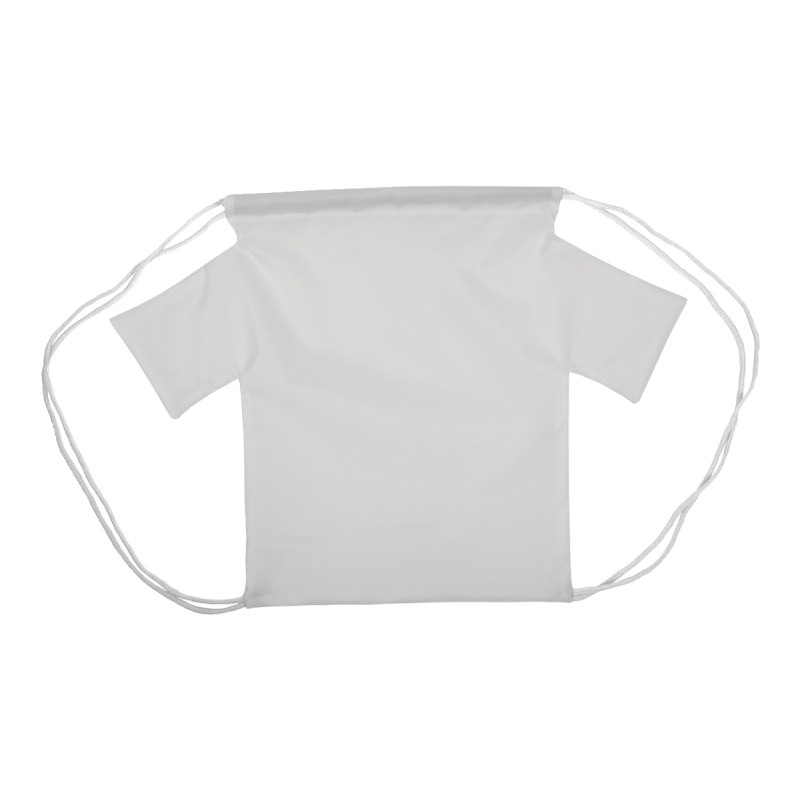 Sac piscine en forme de t-shirt pour enfant avec cordons colorés, polyester 190T. Impression en sublimation sur toute la surface. Quantité minimale : 50 pièces.