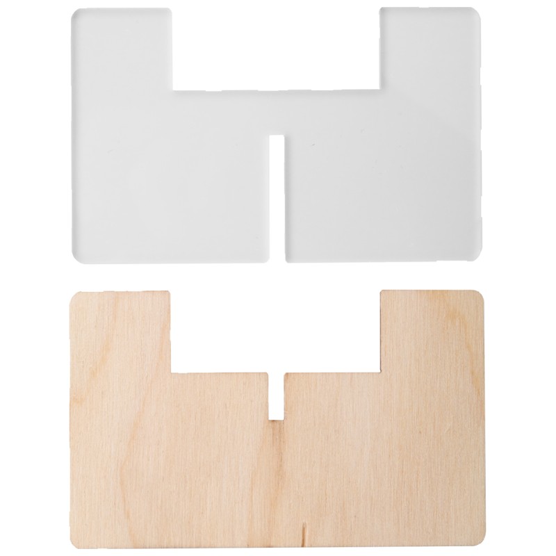 Support pour bougie en contreplaqué de bouleau et acrylique transparent. Livré dans une boîte à plat, bougie non-fournie.