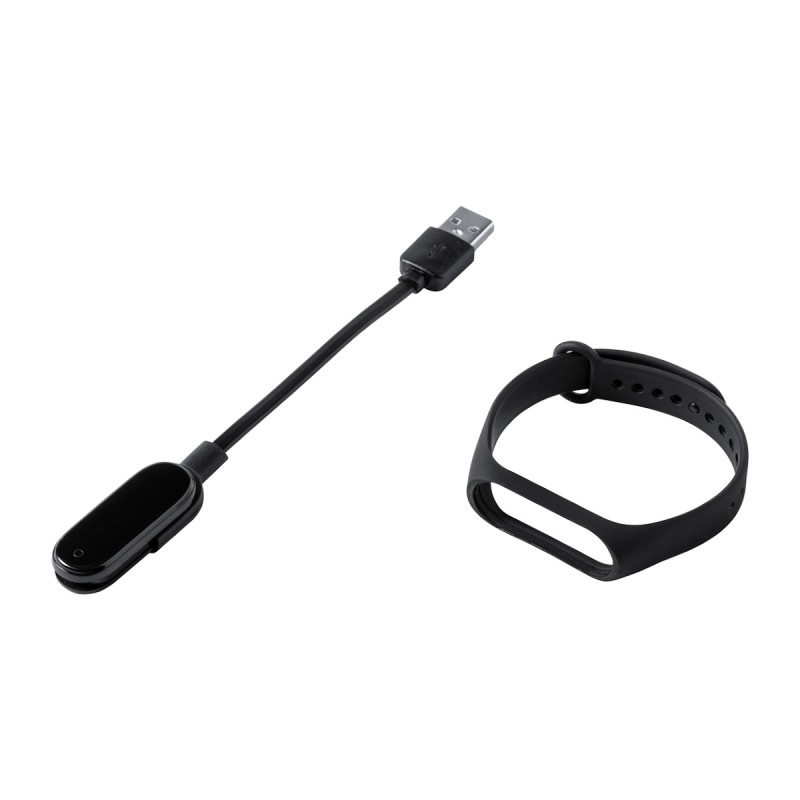 Montre smart Bluetooth multilingue avec thermomètre et écran cardiofréquencemètre, écran TFT 0,96 pouce et sangle en TPU. Avec câble chargeur USB.